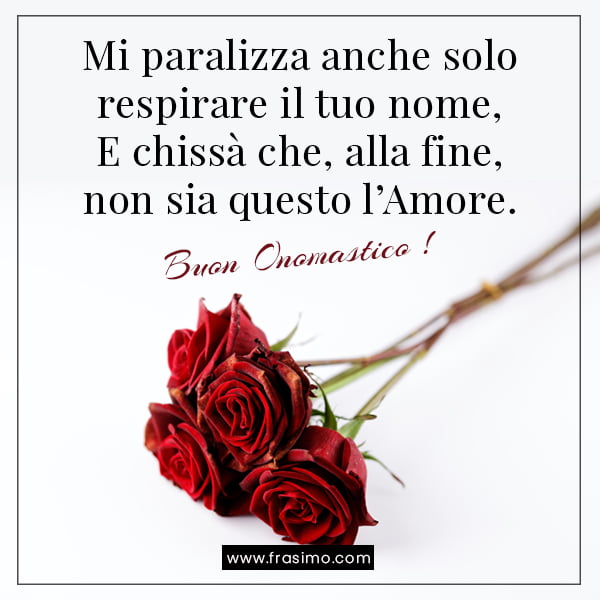 La festa onomastica rende ogni giorno speciale, in quanto serve a ricordarci le persone a cui teniamo, ma a cui non sempre riusciamo ad avere occasione per dirglielo. Auguri floreali per buon onomastico. Il nome del santo che portiamo è come avere un angelo custode personale, che ci sta sempre accanto e a cui possiamo rivolgerci. Raccolta creata il 23 marzo 2020. 02.05.2019 · immagini auguri di buon onomastico per whatsapp. No, non ti ho cucinato la lasagna, ti ho fatto anch'io gli auguri di buon onomastico.